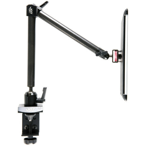 Enjoy the most adjustable mount in the industry with a new Tournez Clamp Mount from The Joy Factory, now equipped with MagConnect™ technology. This impressive mount attaches to flat surfaces, and extends two carbon fiber arms to mount your tablet in a wide variety of settings. This mount ideal solution for watching movies in bed, impressing clients in meetings, or keeping your favorite apps nearby during the workday. From the nightstand to the conference room, the Tournez Clamp Mount stands apart from other mounts--it is the ultimate in secure, adjustable excellence in tablet mounting solutions. For situations that require attaching to a round surface, or where shorter arm-length is required, check out our single-armed Tournez C-Clamp Mount.