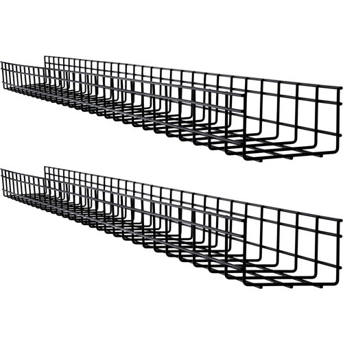 The black powder-coated wire is smooth and rounded, which not only protects cable installers and IT personnel from cutting their hands, but also prevents cables from fraying along sharp edges. The rounded wire also prohibits debris from building up on it in dusty network closets and industrial spaces. Large mesh openings allow you to route cables through the spaces if needed.