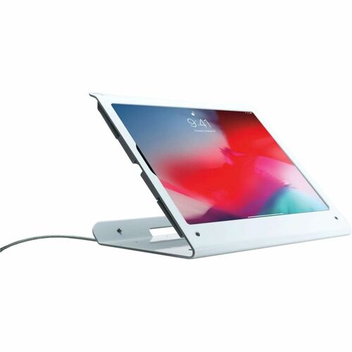 Show off your sleekly modern 3rd Generation iPad while keeping it safe and secure with the Rotating Theft-Deterrent Kiosk Stand, a comfortable addition to any point of sale, showroom, or classroom. The ultra-secure theft deterrent design means your iPad is secured to the case with four screws that can only be opened by a proprietary tool, making it impervious to lock-pickers or thieves carrying traditional tools. When it comes to mounting, this kiosk stand comes with two distinct options: First is the swivel stand, which allows the entire kiosk 360 degrees of rotation for smooth point-of-sale transactions. The second, more secure option involves using the included mounting hardware to affix the entire metal platform directly to a surface. The sleek metal design matches the aesthetics of the iPad 12.9 perfectly while simultaneously protecting the device from damage and allowing full access to the available ports and headphone jacks. The Rotating Theft-Deterrent Kiosk Stand is compatible with iPad 12.9 Gen. 3