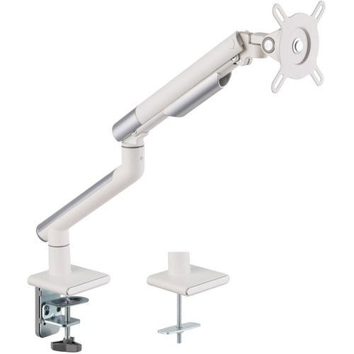 Amer Mounts' HYDRA1A [Arctic Edition] single monitor spring-assisted monitor arm features a slim arm and outstanding flexibility. The HYDRA1A premium aluminum monitor arm combines great look and smooth movement resulting in a better work experience. Internal spring mechanism provides safe and secure movements. This monitor arm mount is ideal for applications requiring frequent display adjustments, including financial analysis and creative work. A quick-release VESA plate allows for effortless monitor installation and removal. A visible tension indicator assists with adjusting the arm for the correct balance. Built-in 180° rotation stop prevents interference with the wall or partitions. The cable management conceals the wires for a clutter-free appearance.