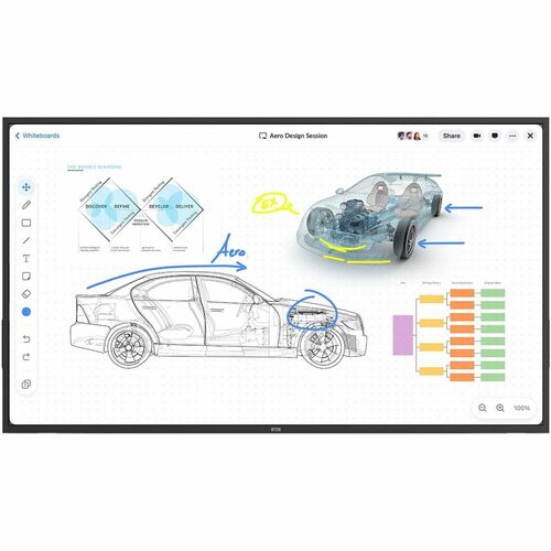 A persistent interactive whiteboard is available before, during, and after a meeting for hybrid teams to access both inside and outside of the meeting.